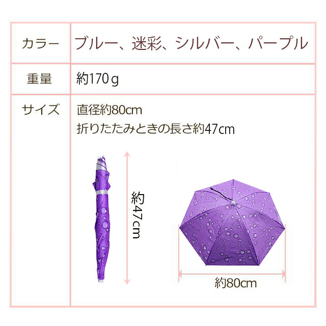 ・頭にかぶる帽子タイプのユニークな折りたたみ傘です。