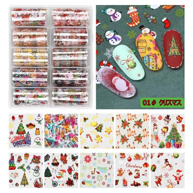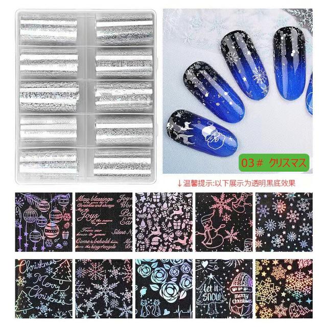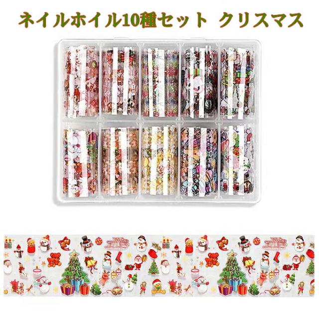 ネイルホイル10種セット クリスマス christmas アートホイル カラーフィルム ネイルホイル ネイル用品