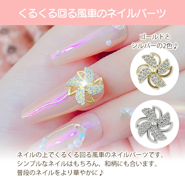 ネイルパーツ くるくる回る 風車 メタルパーツ ジルコニア製 スピナー ビジュー 宝石 ゴールド ジェルネイル ジェル ネイル用品 ハンドメイド デコ メタル デコパーツ ネイルアート ジュエリーネイル ネイルグッズ 送料無料