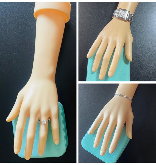 ☆ひじ近くまでの長さがあるため、指輪だけでなく時計、ブレスレットなどのアクセサリーのディスプレイにも対応できます♪