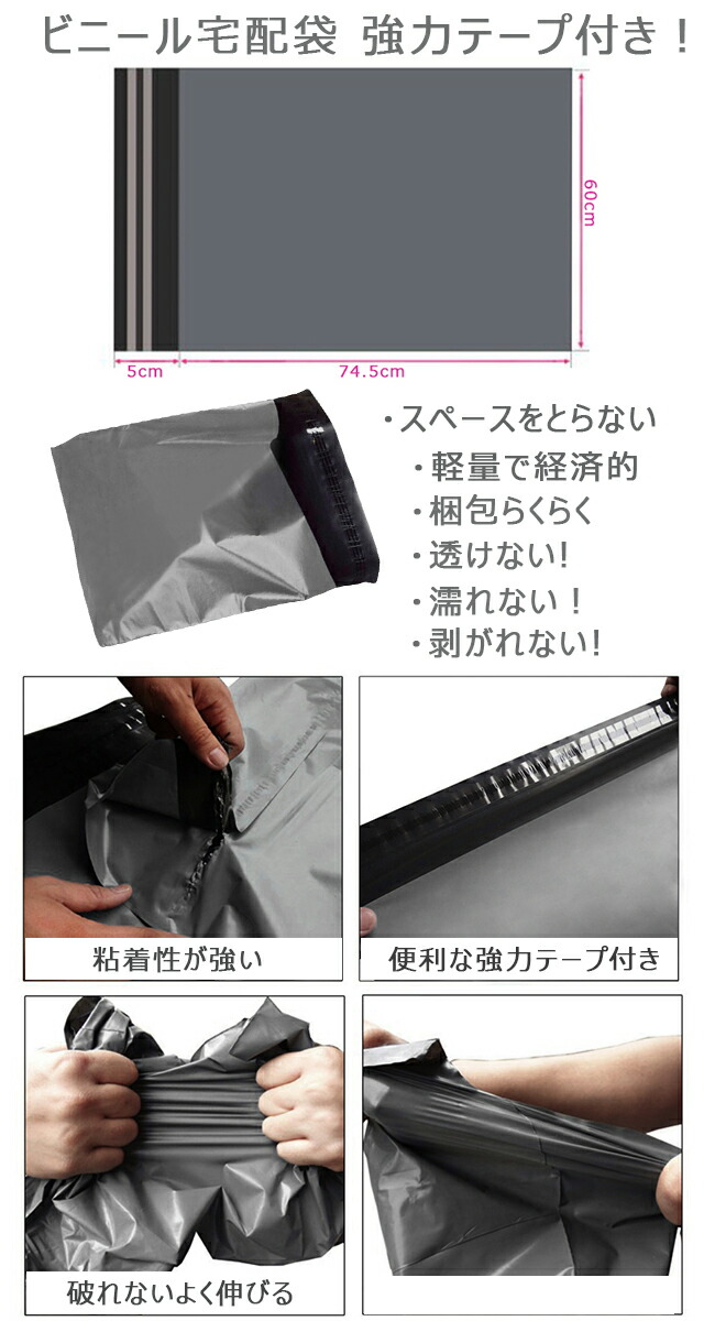 ビニール宅配袋 強力テープ付き!10枚 7#■60×74.5+5cm