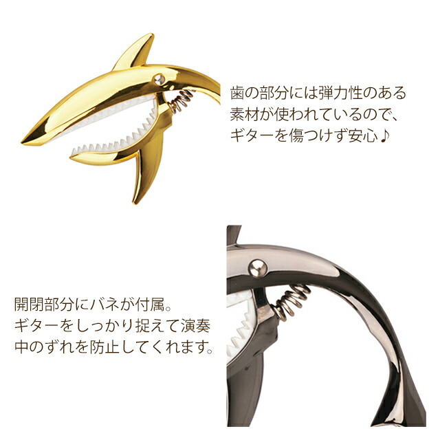 ギター カポタスト ワンタッチ シャーク サメ デザインカポ フォーク エレキ ギター カポ capo アコギ 可愛い クラシックギター エレキギター フォークギター アコースティックギター アコギ用 音程調整 送料無料