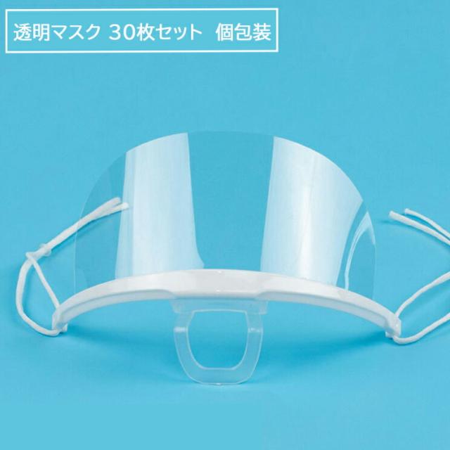 透明マスク 30枚セット 超軽量 衛生マスク マウスシールド フェイスシールド 洗える 飛沫防止 表情が見える アゴ固定式 呼吸が楽 ムレない 調節可能 メイク落ちなし 飲食店 接客 美容 医療 育児 イベント フェイスカバー 繰り返し使用 個包装