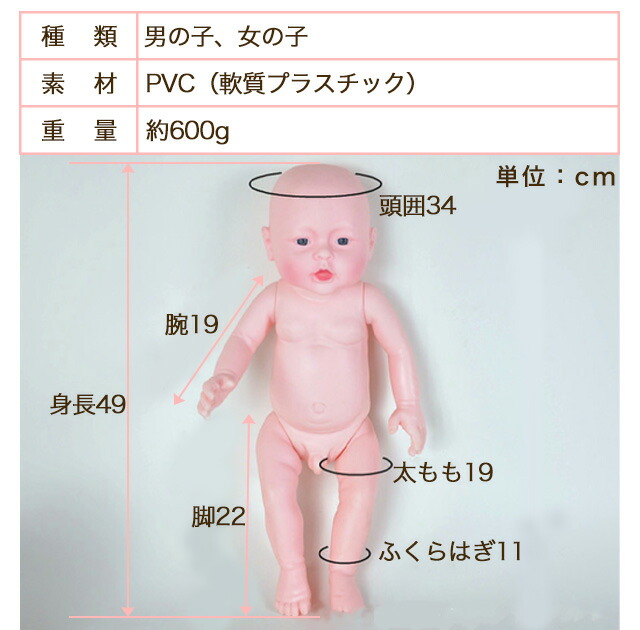 赤ちゃん 人形 ベビードール マネキン 男の子 女の子 あかちゃん 新生児 ごっこ 沐浴 ママドール 動く人形 トレーニング 研修 モデル ベビーマッサージ 用 ドール 着せ替え きせかえ かわいい 49cm ベビー お世話 模型 送料無料