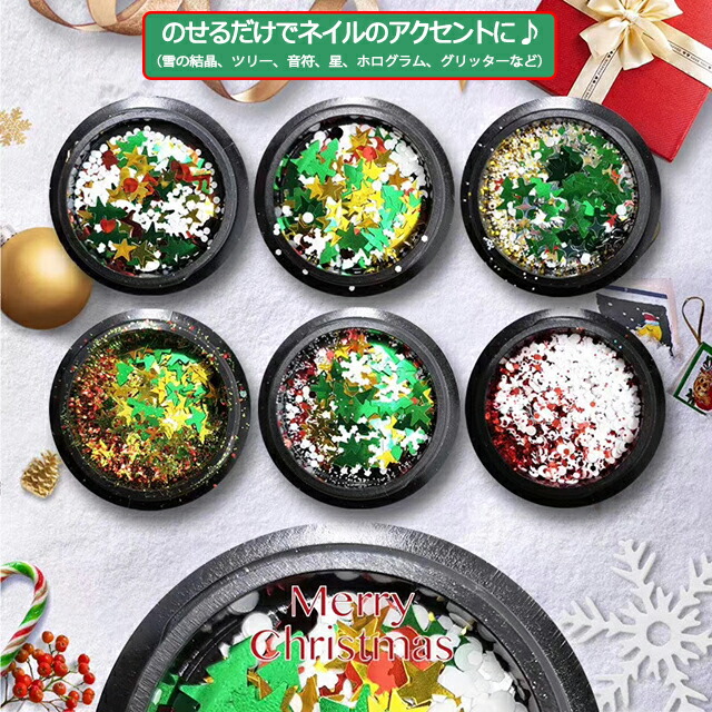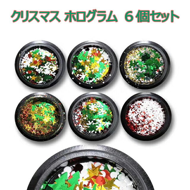 クリスマス ホログラム 6個セット グリッター ネイルアート レジン セルフネイル 雪の結晶 HANA-657
