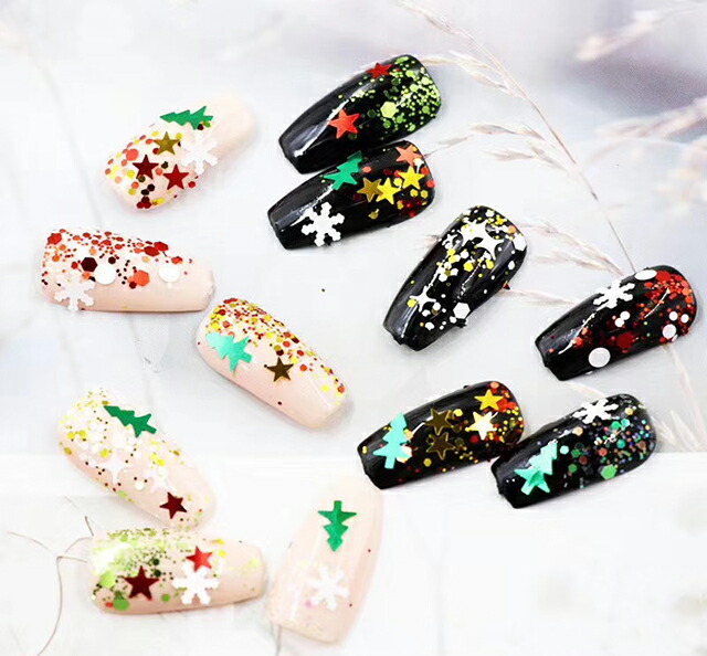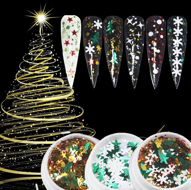 (雪の結晶、ツリー、音符、星、ホログラム、グリッターなど)