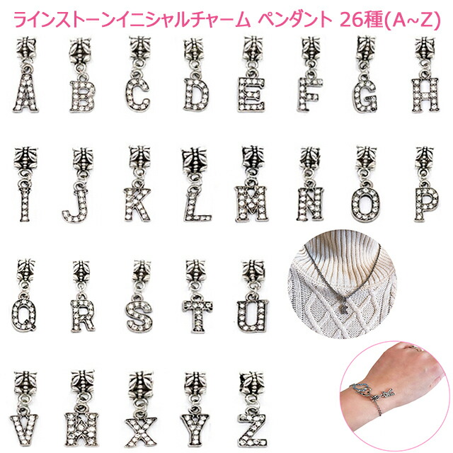 ・ラインストーン付きアルファベット全26種(A〜Z)チャーム