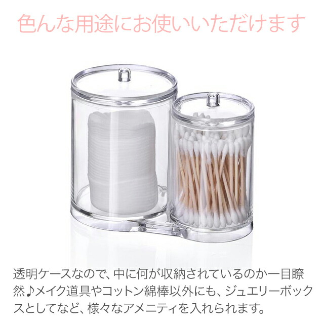 コットンや綿棒など、容量がしっかり収納できる、フタつきアクリルケースです。