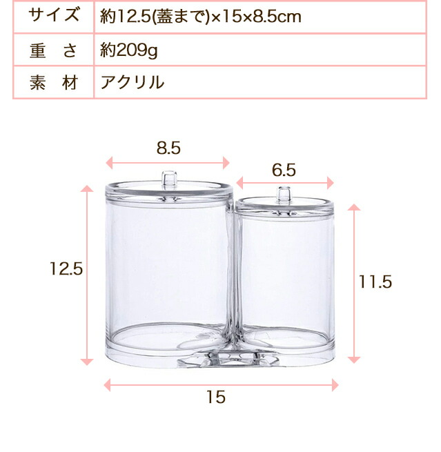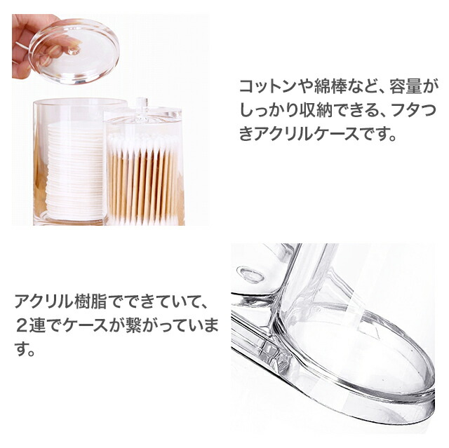 蓋付き綿棒ケース 二連 綿棒ホルダーボックス 化粧綿棒 綿パッド 容器 メイクケース アクリルケース コットン 綿棒 小物 ピンセット収納 コットンパッド ジュエリーボックス アメニティケース コットン 収納 シンプル 送料無料