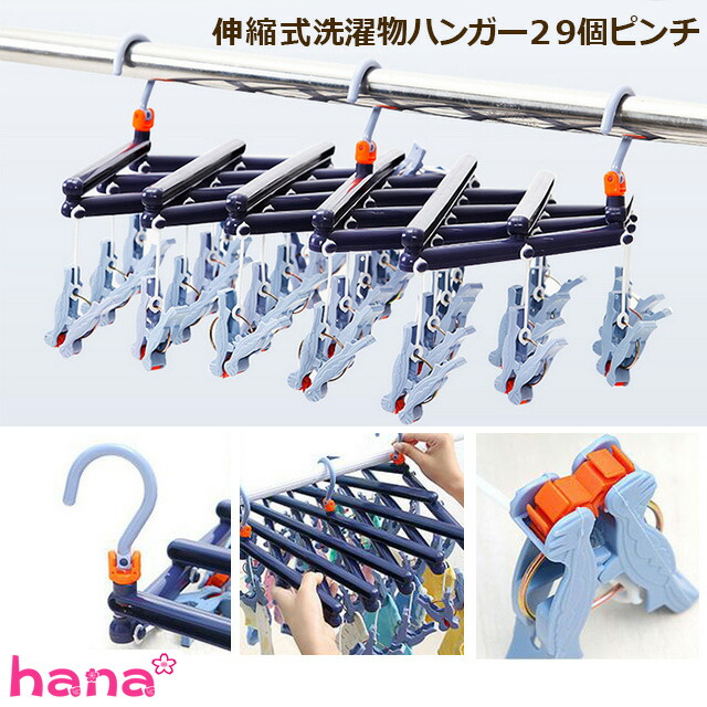 29ピンチ 引っ張るだけ で取れる ピンチハンガー ローラー付 伸縮式 洗濯ハンガー 角ハンガー コンパクト 洗濯 室内物干し 部屋干し ハンガー 洗濯ばさみ プラスチック ひっぱるだけ タオルハンガー 洗濯物干し 送料無料