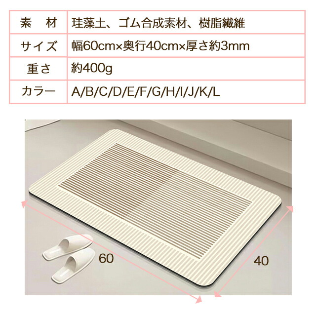 【素 材】珪藻土、ゴム合成素材、樹脂繊維