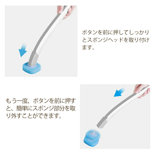 ボタンを前に押してしっかりとスポンジヘッドを取り付けます。