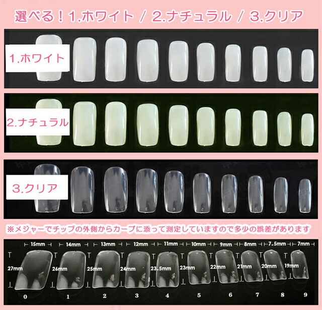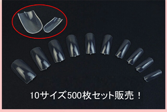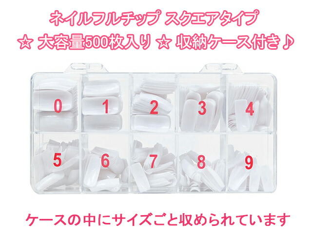 ネイルフルチップ スクエアタイプ 500枚入 チップ つけ爪 ネイルチップ 大容量 収納ケース付 ジェルネイル 練習 サンプルチップ スカルプネイルチップ 道具 クリア ナチュラル ホワイト