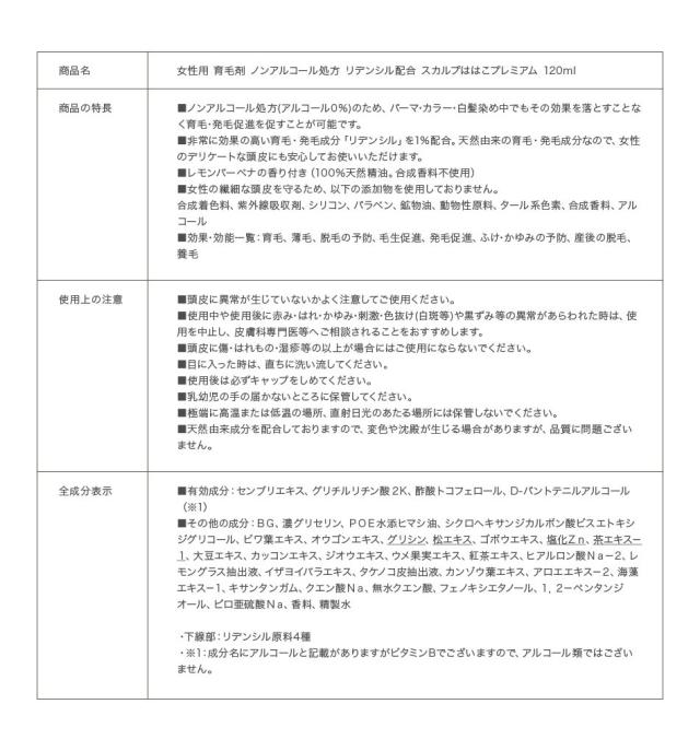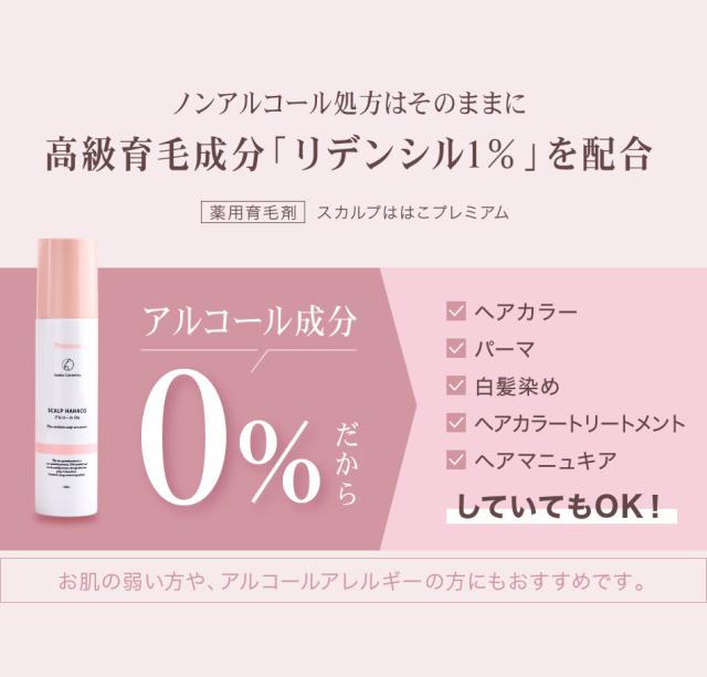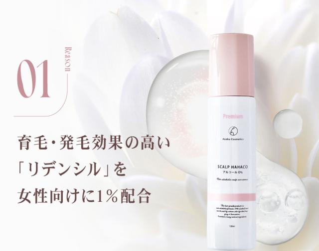 女性の薄毛、抜け毛、分け目が気になる方への育毛剤 スカルプははこプレミアム 120ml リデンシル配合 ノンアルコール アルコール0% アルコールフリー 発毛 育毛 ボリュームアップ 発毛剤 女性用 育毛剤 医薬部外品
