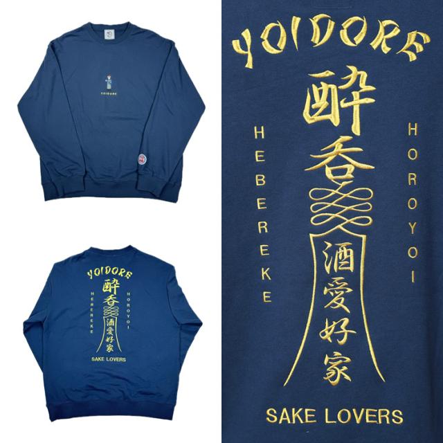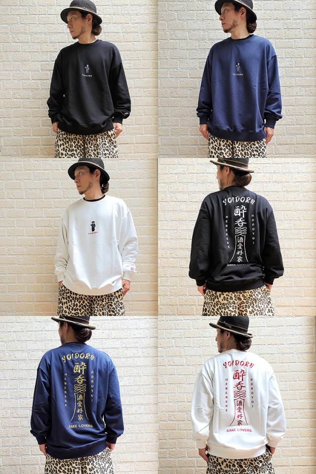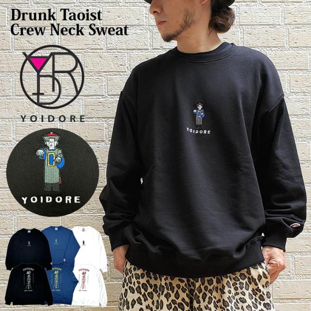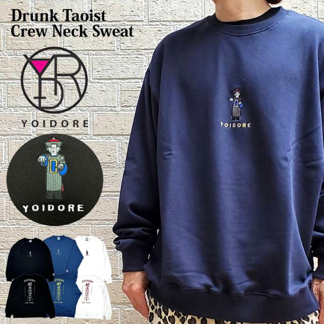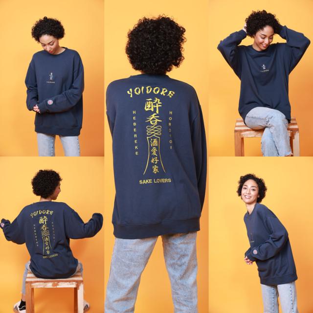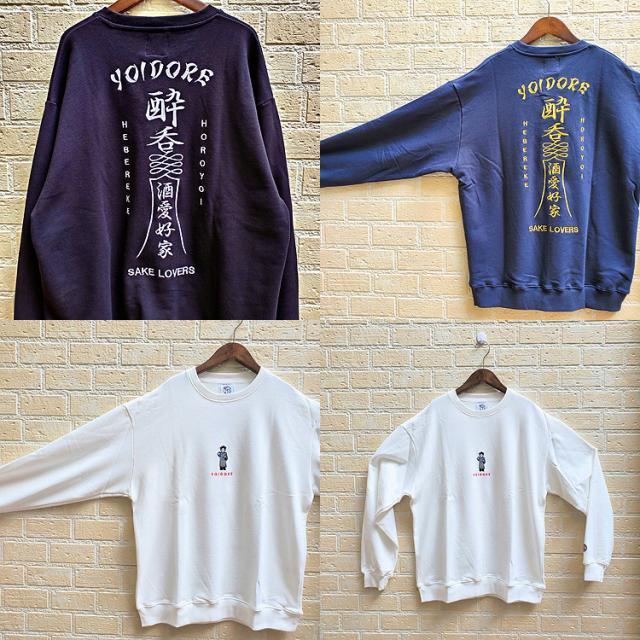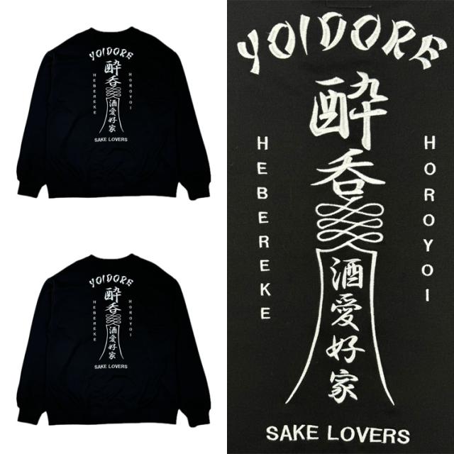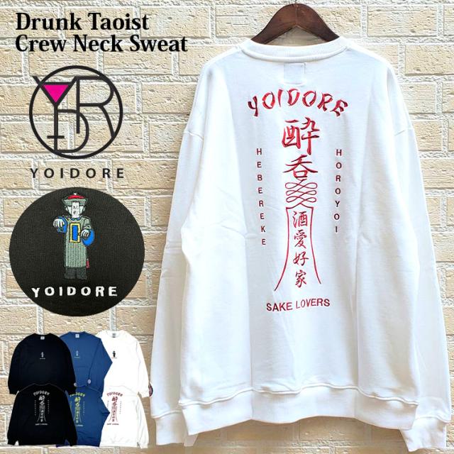 YOIDORE 裏毛 刺繍 スウェット クルーネック 酔いどれ道士 酒愛好家 ルーズ シルエット トレーナー トップス ユニセックス HOROYOI HEBEREKE 和柄 漢字 834404