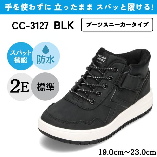 セダークレスト CEDAR CREST スパットシューズ(ブーツスニーカータイプ) 防水 手を使わずに履ける【19.0cm〜23.0cm】 (ブラック) CC-3127 キッズ