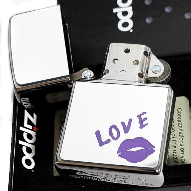 まるで鏡のような表面にルージュで描いたようなキュートなデザインのZIPPOライターです。