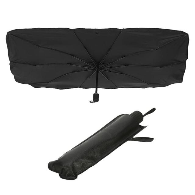 JWMY 車両フロントガラス用日よけ 傘タイプ - 紫外線と熱をブロック 遮光と遮熱で効果的に暑さを防ぐ 日焼け対策 紫外線対策 車中泊・昼寝のプライバシー保護に 車用サンバイザー、車用サンシェード、反射板、 折り畳み式 取付け簡単 収納ポーチ付き (Sサイズ:125x65cm)