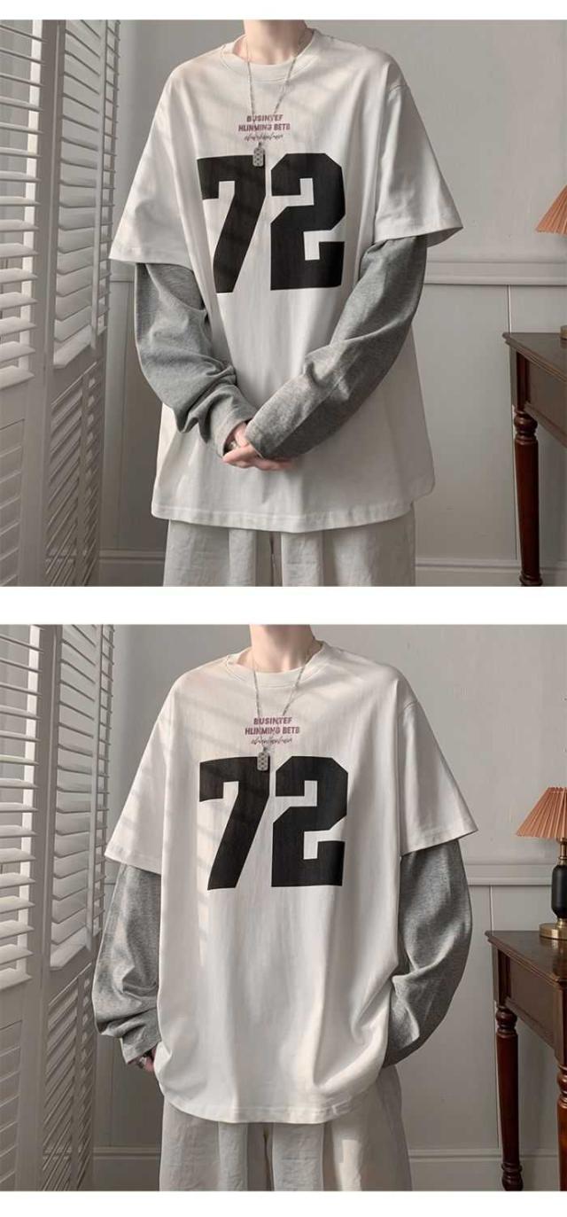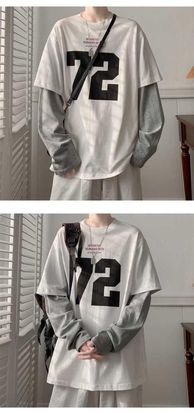 メンズトップス トレーナー 長袖tシャツ 秋服 安い トレーナー 格好い 切り替え柄 ゆったり10代 20代 30代 秋新作