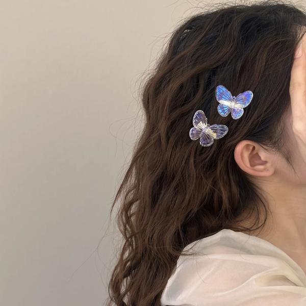 バタフライソフトスーパーマーメイド女性用ヘアクリップ カラフル 吸収性驚き 透明ヘッドドレス ガールズヘアアクセサリー 1ペア