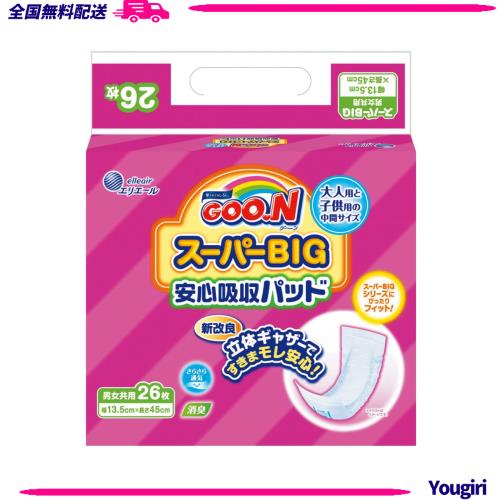 ◆商品名:【パッド スーパーBIG】グーン 安心吸収 (15~35kg)26枚