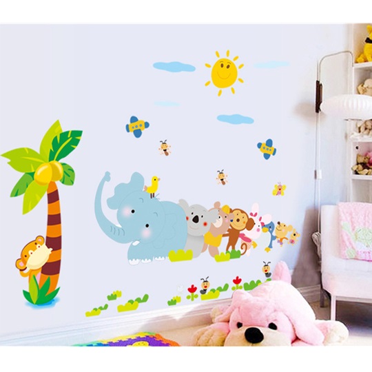 ウォールステッカー 動物 昆虫 ヤシの木 太陽 はがせる 壁紙シール ゾウ コアラ さる うさぎ ペンギン 蟻 飛行機 男の子 女の子 幼稚園