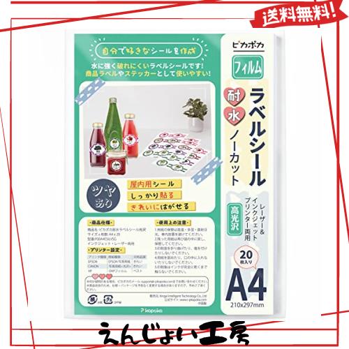 ◆商品名:ピカポカ ラベルシール 耐水 光沢 A4 20枚 ?がしやすい レーザーとインクジェットプリンター兼用 (P00A4ESILVSG)