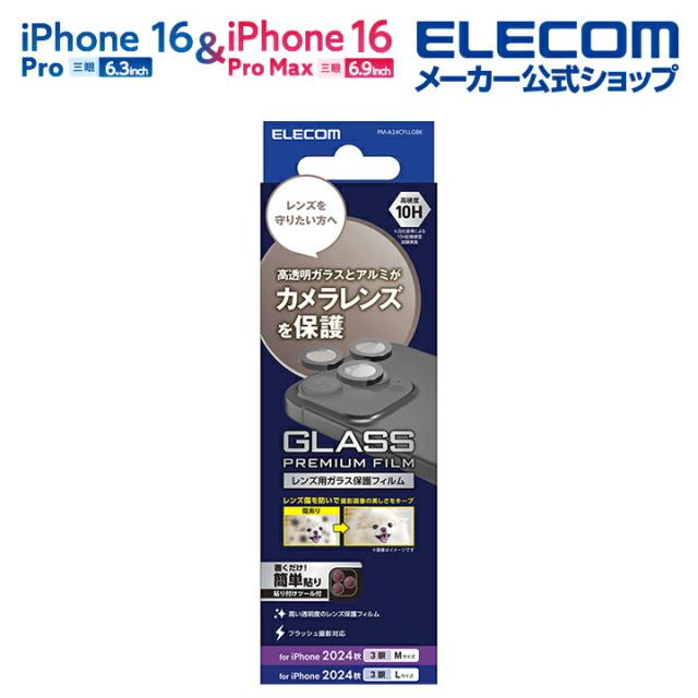 エレコム iPhone16 Pro / Pro MAX 3眼 用 カメラレンズガラスフィルム 3眼 レンズ 保護フィルム ブラック┃PM-A24CFLLGBK