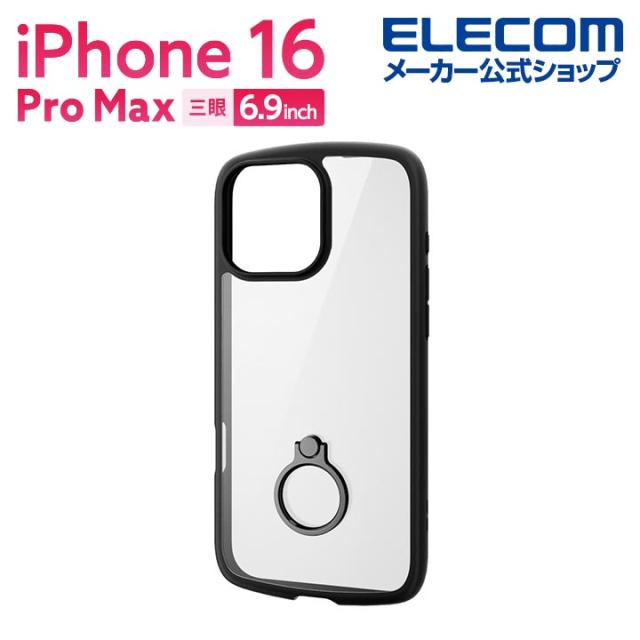 【在庫処分・お買い得!】 エレコム iPhone16 Pro MAX 用 TOUGH SLIM LITE ハイブリッドケース フレームカラー リング付 カバー ブラック┃PM-A24DTSLFCRBK
