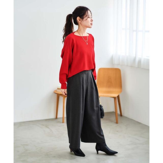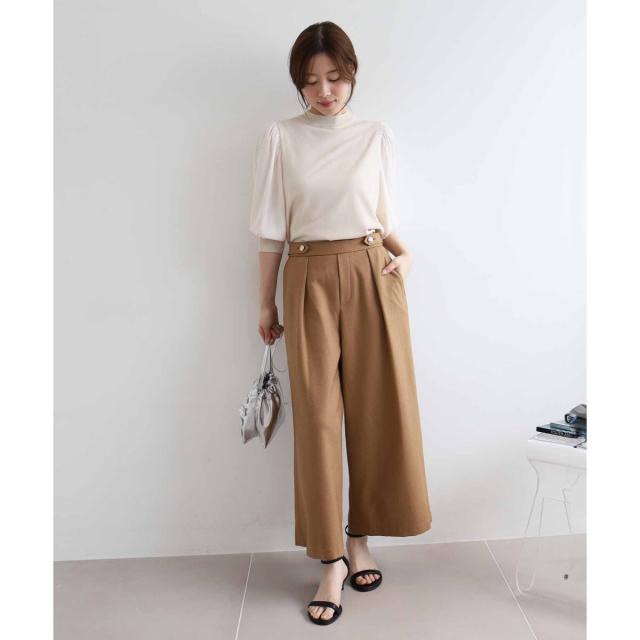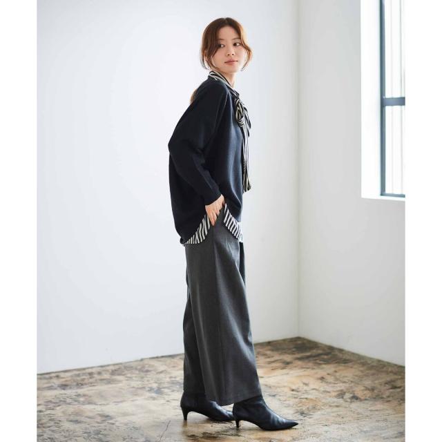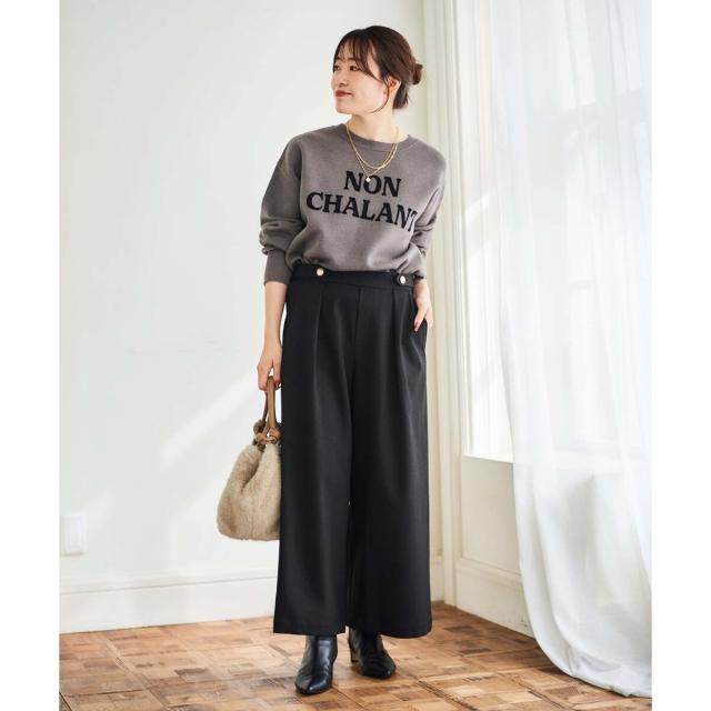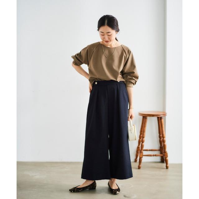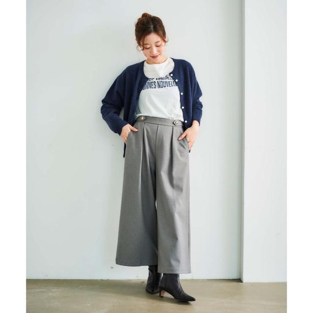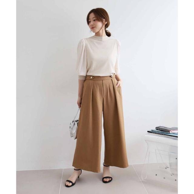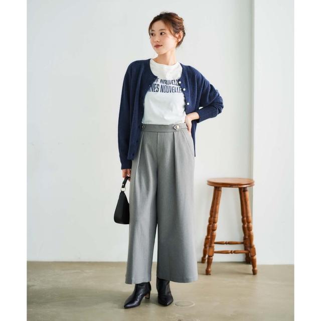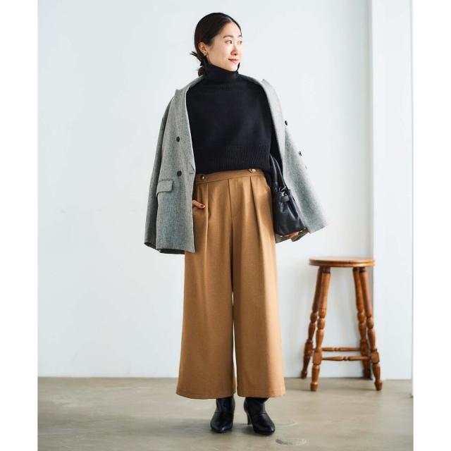 ルクールブラン(le.coeur blanc)/ウールライクウエストデザインワイドクロップドパンツ