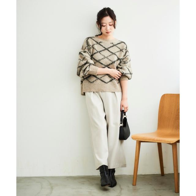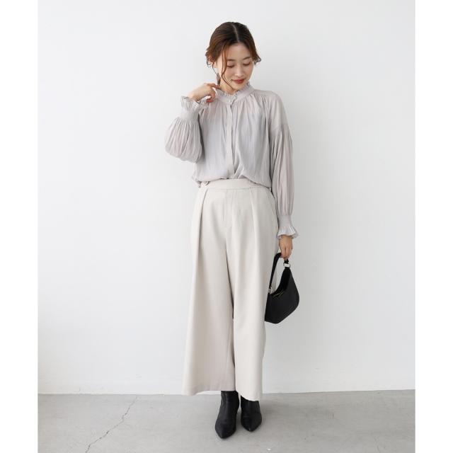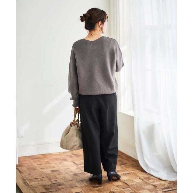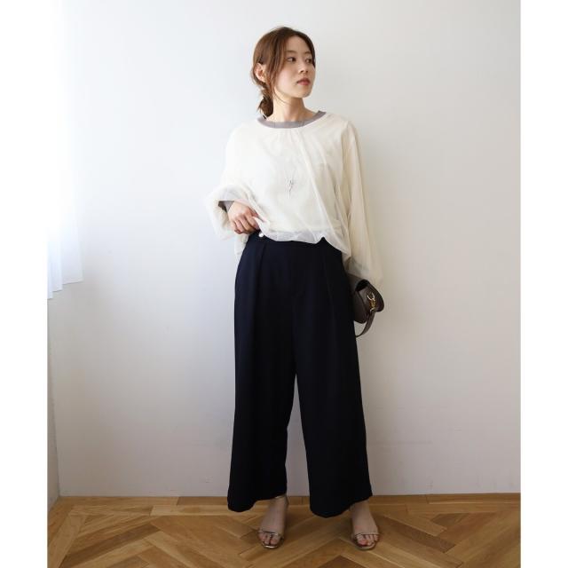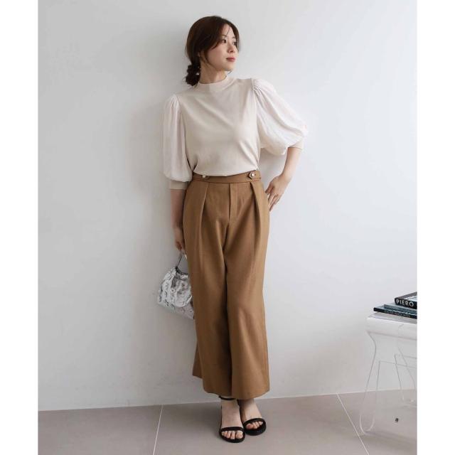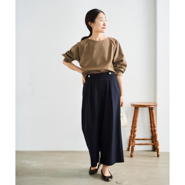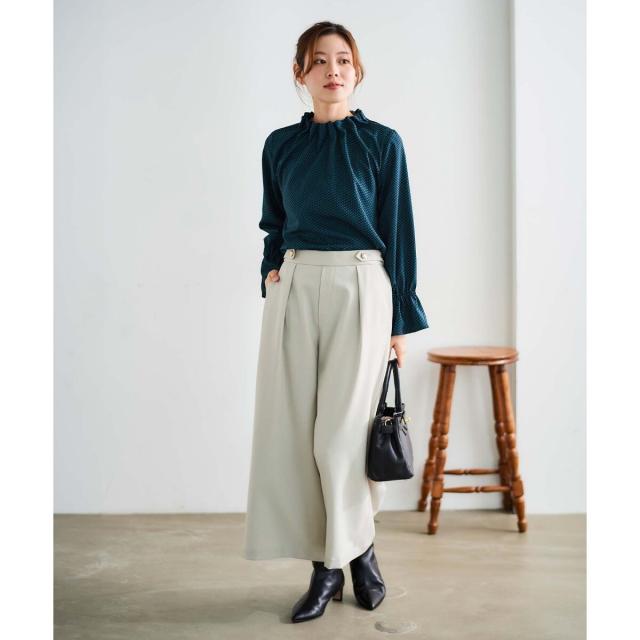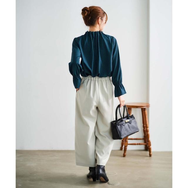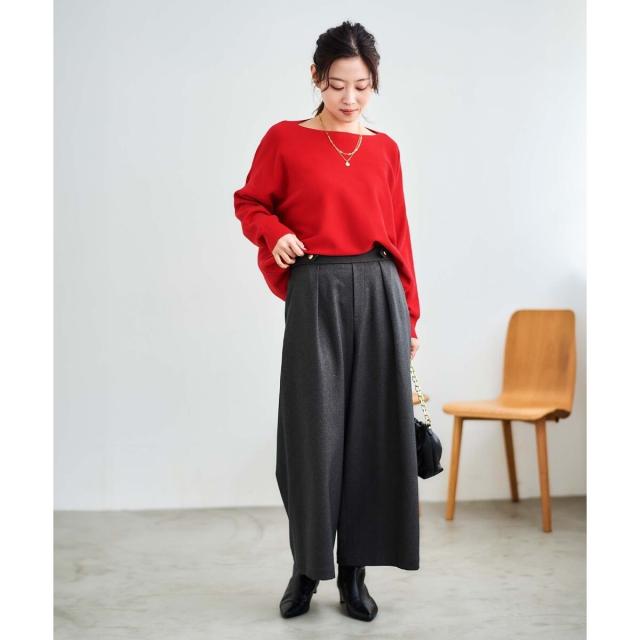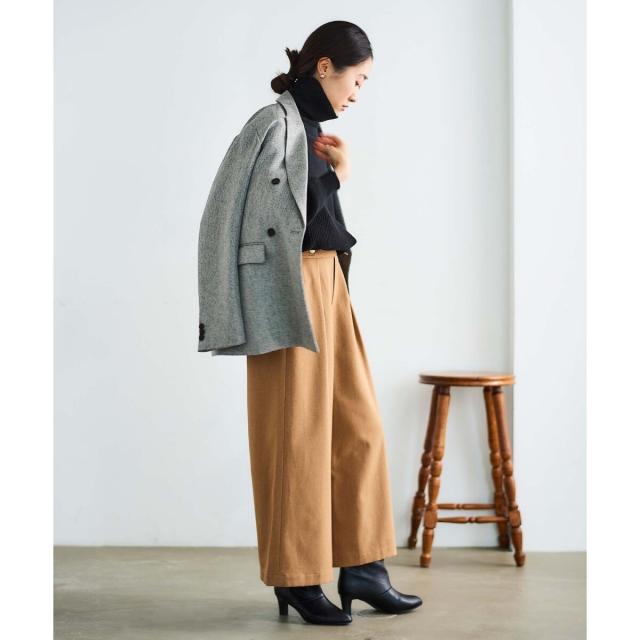 ルクールブラン(le.coeur blanc)/ウールライクウエストデザインワイドクロップドパンツ