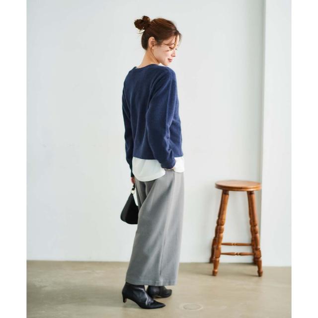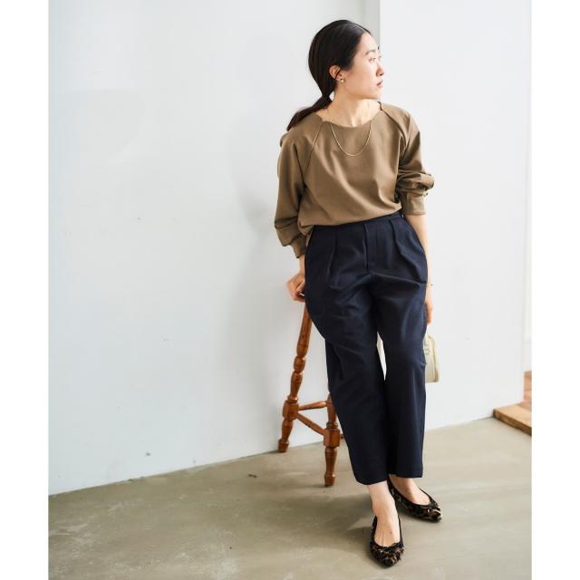 着用感:シルエットはややワイドで、足首が見えてスッキリ感もあります。冬にかけてはショートブーツとの合わせてもバランス良いです。