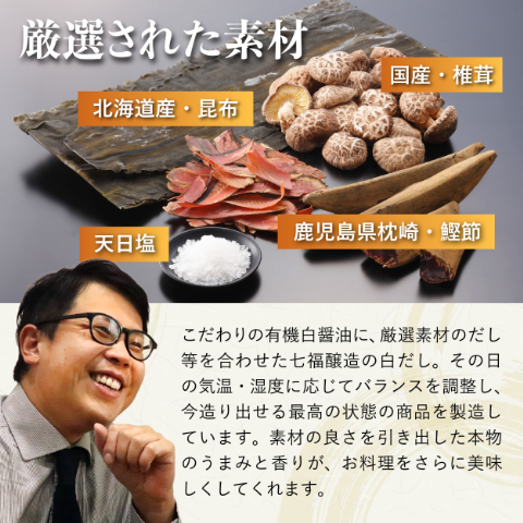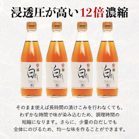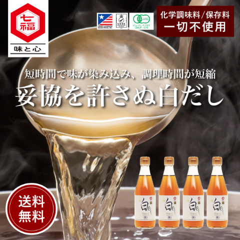 七福醸造 有機白だし 360ml 4本セット【送料無料】 有機JAS認定 化学調味料・保存料 一切不使用 短時間で味が染み込む本格白だし | プレゼント ギフト 料理 調理 調味料 父の日 母の日 72b4
