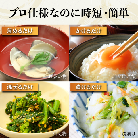 だしを取る手間もなく、様々な料理にお使い頂ける、万能調味料です。