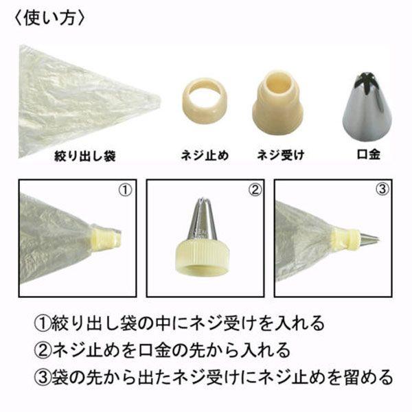 ネジ式で口金と絞り袋が固定され使いやすく美しく飾り付けられます。