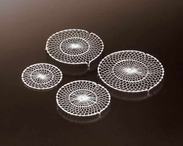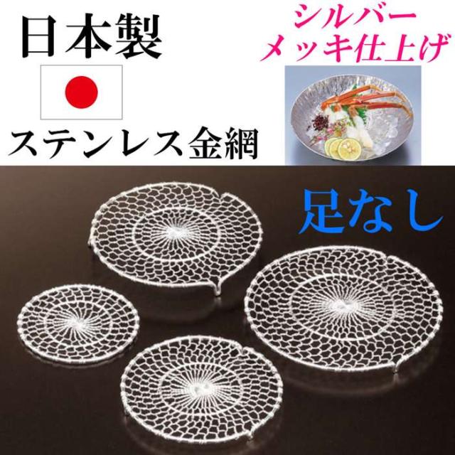 日本製 金網 丸型 円形 ステンレス シルバー メッキ仕上げ 手編み ハンドメイド 目皿 網 フライ 天ぷら用 とんかつ用 揚げ物用 盛り付け網 業務用 家庭用 足なし