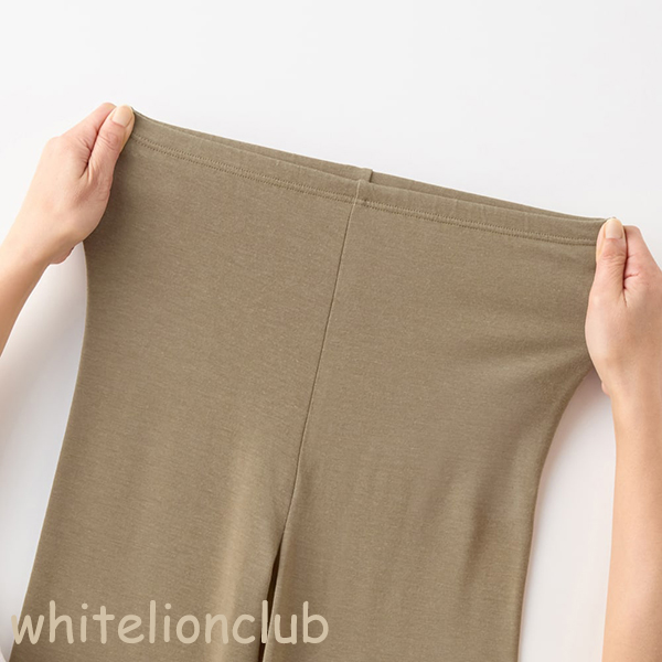 重ね着しやすい中厚素材です。10分丈で足首まで暖かく、ワイドパンツやスカート下の寒さ対策としてもおすすめです。