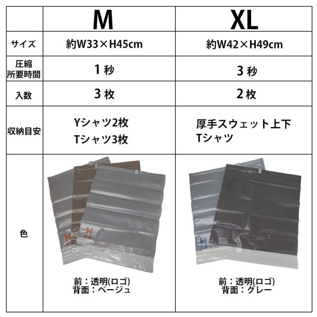 ■座るだけで約1秒で圧縮出来る圧縮袋3枚セットです。 ■収納目安はYシャツ2枚+Tシャツ3枚。機内持ち込みサイズのスーツケースぴったりサイズ。 ■エンボス加工でスムーズに収納可能。内側は抗菌加工を施してあり安心してお使いいただけます。 ■繰り返しお使いいただけます。出張・旅行はもちろん、災害時にも!タオルや衣類をコンパクトにして防災リュックに入れることができ、いざというときに大変役に立ちます。 |