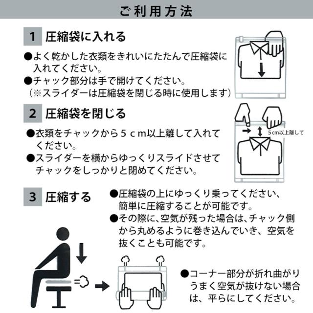 ■座るだけで約1秒で圧縮出来る圧縮袋3枚セットです。