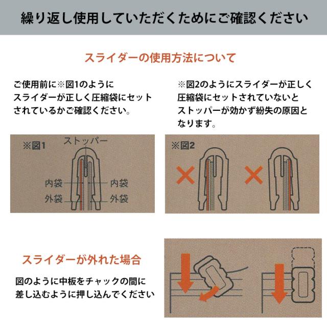 ■素材:圧縮袋:ポリエチレン・ナイロン スライダー:ポリプロピレン