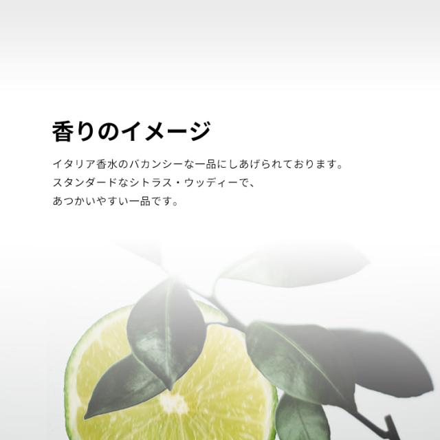 香りは、さわやかなシトラス・ウッディーの香調がベース。イタリア香水のバカンシーな一品にしあげられております。