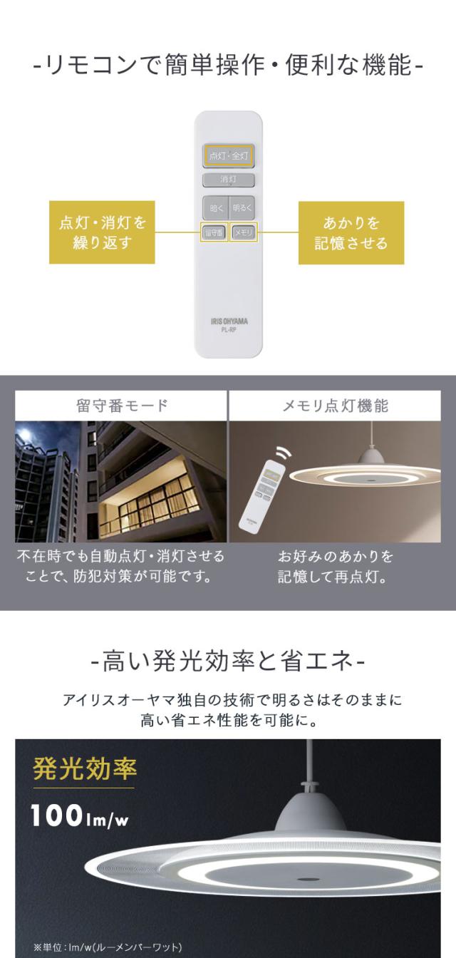 ペンダントライト led 6畳 ダイニング リモコン付き 照明 おしゃれ 寝室 照明器具 吊り下げ シンプル ライト 明るい 取付 簡単 和室 新生活 PLP6D アイリスオーヤマ *