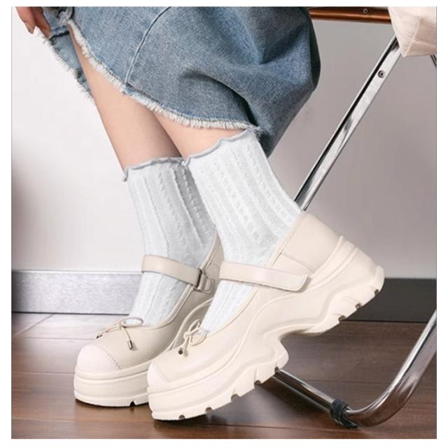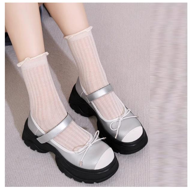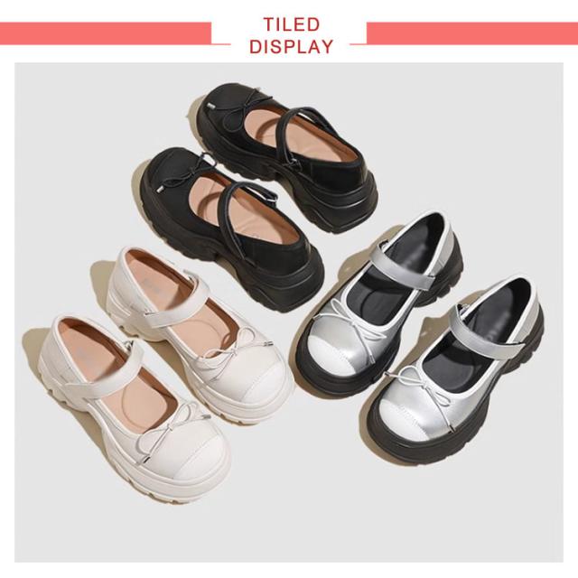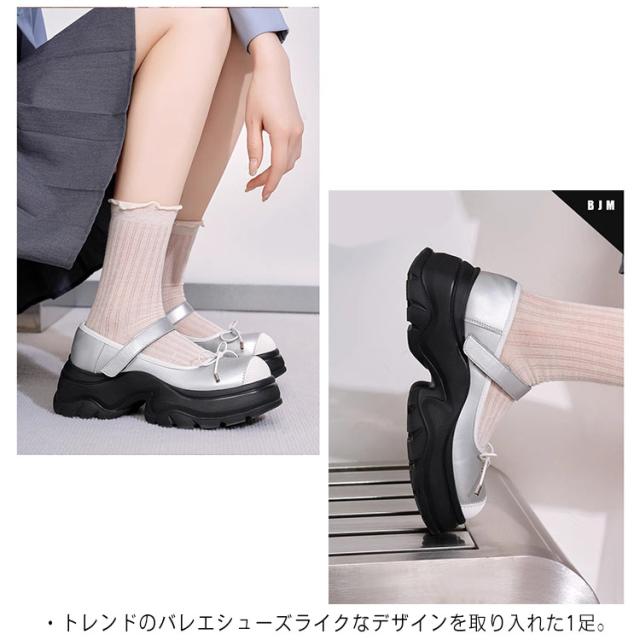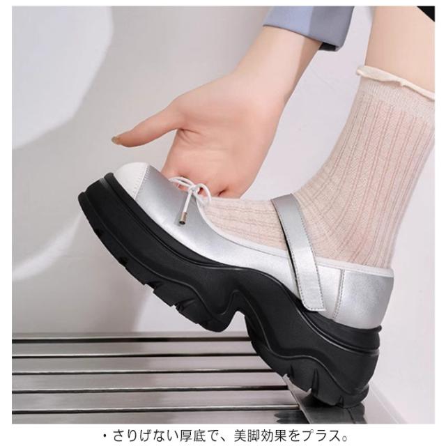 履きやすい 7cmヒール 厚底 スニーカー シューズ 靴 バレエスニーカー 厚底スニーカー 靴 リボン お出かけ ディリー シルバー ブラック おしゃれ
