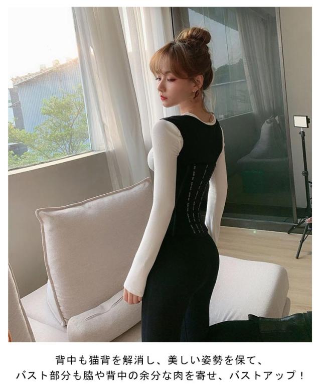 | タンクトップ型コルセットは胸からお腹までのラインを美しく整える補正下着です。 通気性抜群のメッシュ生地を使用!ホックを使い、しっかり美くびれラインをキープ。 引き締めることでぽっこりお腹もすっきり見え。ホックの引き締め具合は4段階に調節可能なので、お好みの引き締め感でお使いいただけます。 背中も猫背を解消し、美しい姿勢を保て、バスト部分も脇や背中の余分な肉を寄せ、バストアップ! 服に響きにくく通気性も良い為デイリーでお使い頂けます。さらに使い続ける事にお腹、腰、背中回りが整いくびれの定着が期待されます。 | |