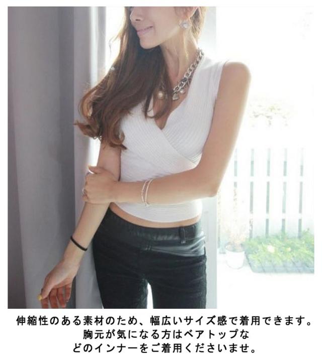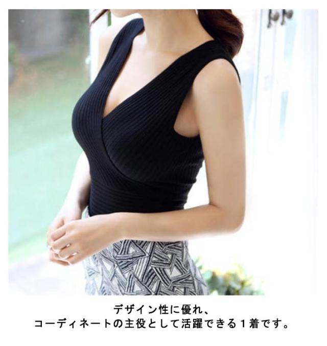 カシュクール 全14色!ノースリーブ ニット リブニット レディース カシュクール ショート丈 ノースリーブ 薄手ニット スリム セクシー サマーニットリブ編み 着痩せ 胸元 深いVネック ダンス きれいめ 細見え