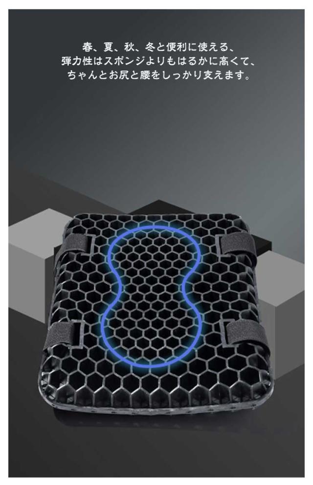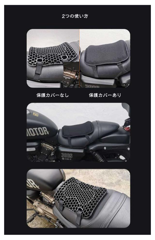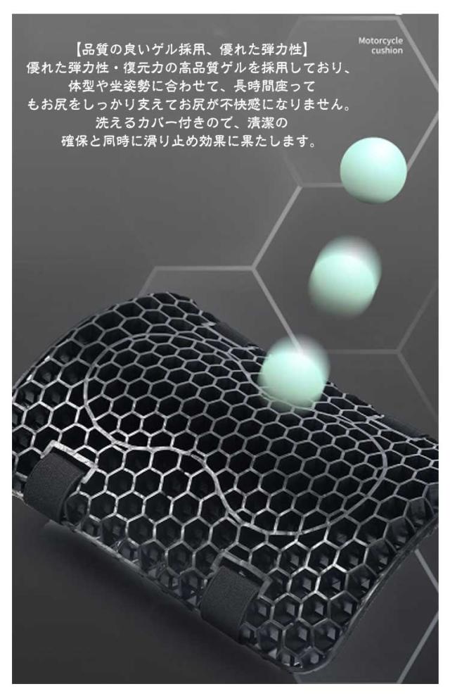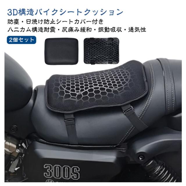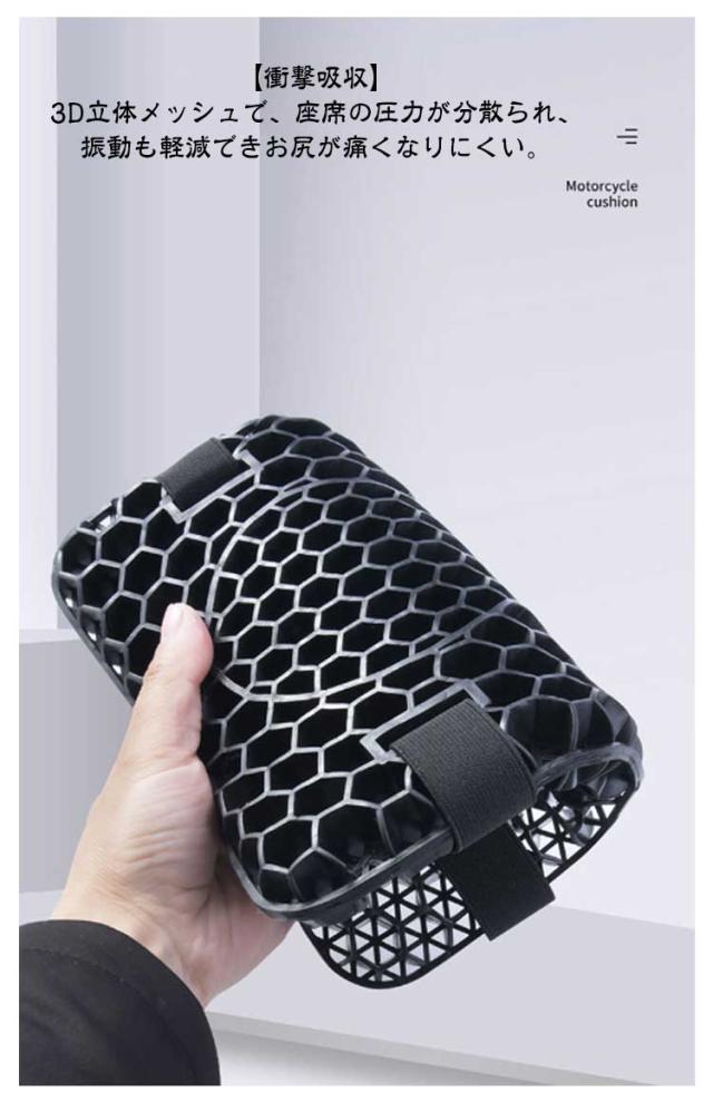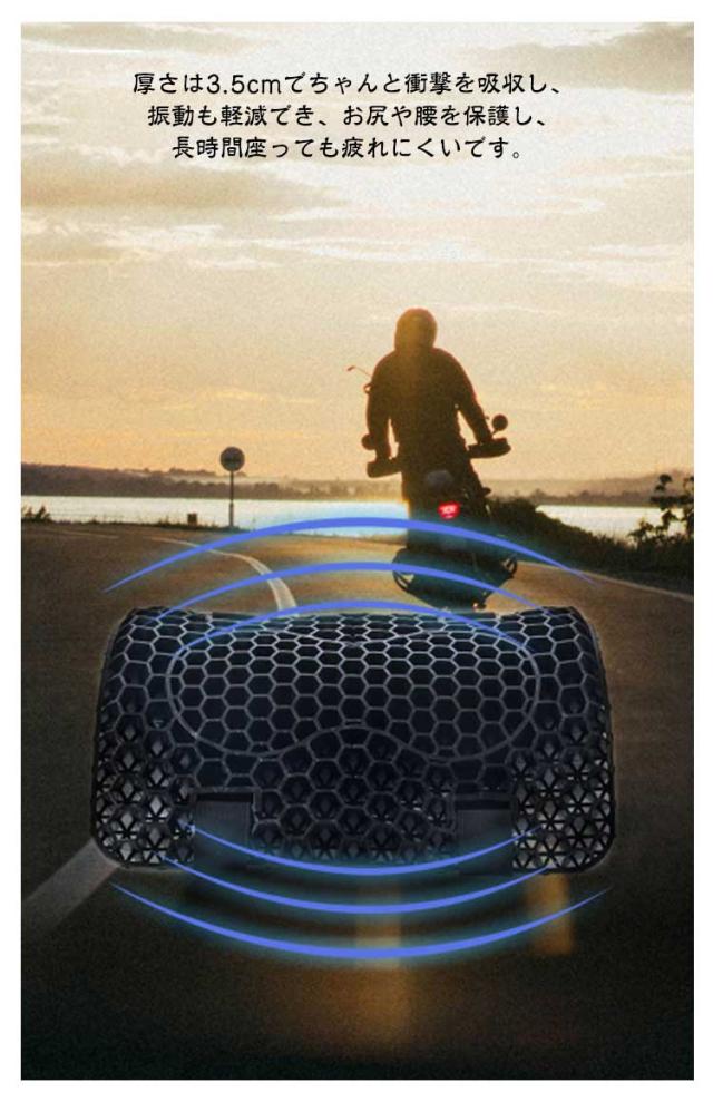 | 八二カム構造耐震・尻痛み緩和・振動吸収・通気性 防塵・日焼け防止シートカバー付き 3D構造バイクシートクッション 【2個セット】 【ハニカム構造】 ハニカム構造を採用して、体重を分散させる性能が高いゲル素材採用したことで、より柔らかな感覚を得られるとともに、体圧分散性能が向上! 春、夏、秋、冬と便利に使える、弾力性はスポンジよりもはるかに高くて、ちゃんとお尻と腰をしっかり支えます。 厚さは3.5cmでちゃんと衝撃を吸収し、振動も軽減でき、お尻や腰を保護し、長時間座っても疲れにくいです。 【衝撃吸収】 3D立体メッシュで、座席の圧力が分散られ、振動も軽減できお尻が痛くなりにくい。 【品質の良いゲル採用、優れた弾力性】 優れた弾力性・復元力の高品質ゲルを採用しており、体型や坐姿勢に合わせて、長時間座ってもお尻をしっかり支えてお尻が不快感になりません。洗えるカバー付きので、清潔の確保と同時に滑り止め効果に果たします。 【体圧分散&ジェルクッション】 人間工学に合わせて設計で、体圧を均一に吸収・分散して、均一に体圧分散を行うことで体への負荷を軽減する効果が期待できます。 【メッシュ保護カバー付き】 シートクッションの寿命を延ばします。 通気性のあるメッシュデザインは通気性機能に影響を与えません。 | |