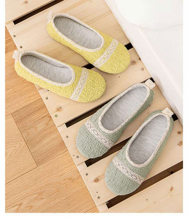| シボ感のあるアッパーとレースが可愛らしいかかと付きスリッパ。 アッパーは綿のクレープ素材なので履き心地抜群! アウトソールには滑りにくいTPR素材を使用。凹凸のあるデザインはグリップ力を高め、歩行をサポートします。 ご自宅でのスリッパやお部屋でのルームシューズとしてはもちろん、会社のオフィス用や学校、体育館などあらゆる場面でお使いいただけます。 | |