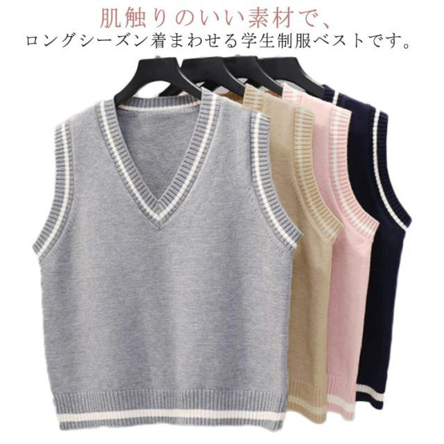 スクールベスト ベスト 学生服 無地 高校生 中校生 レディース 制服 トップス 女子 Vネック 春秋 ベスト コスプレ セーター 入学準備 通学 カジュアル ニットベスト 入学式 卒業式 仮装 発表会 文化祭 学校