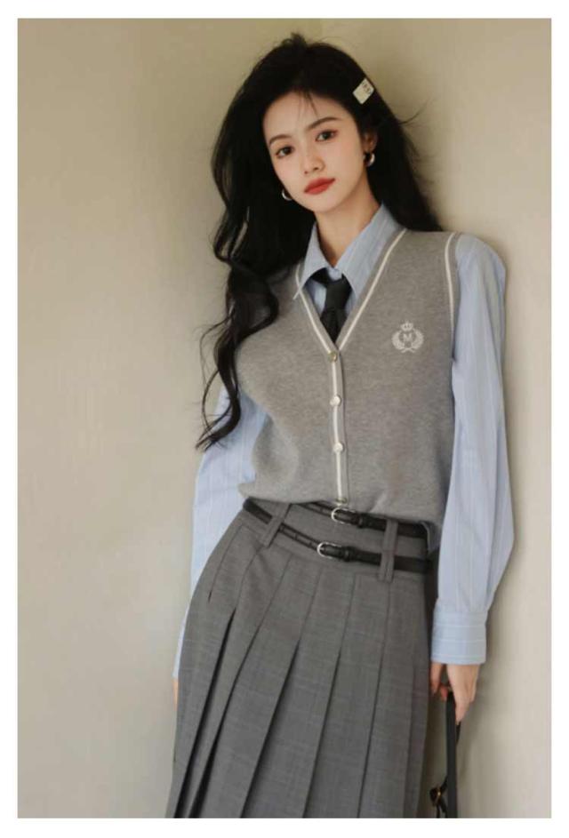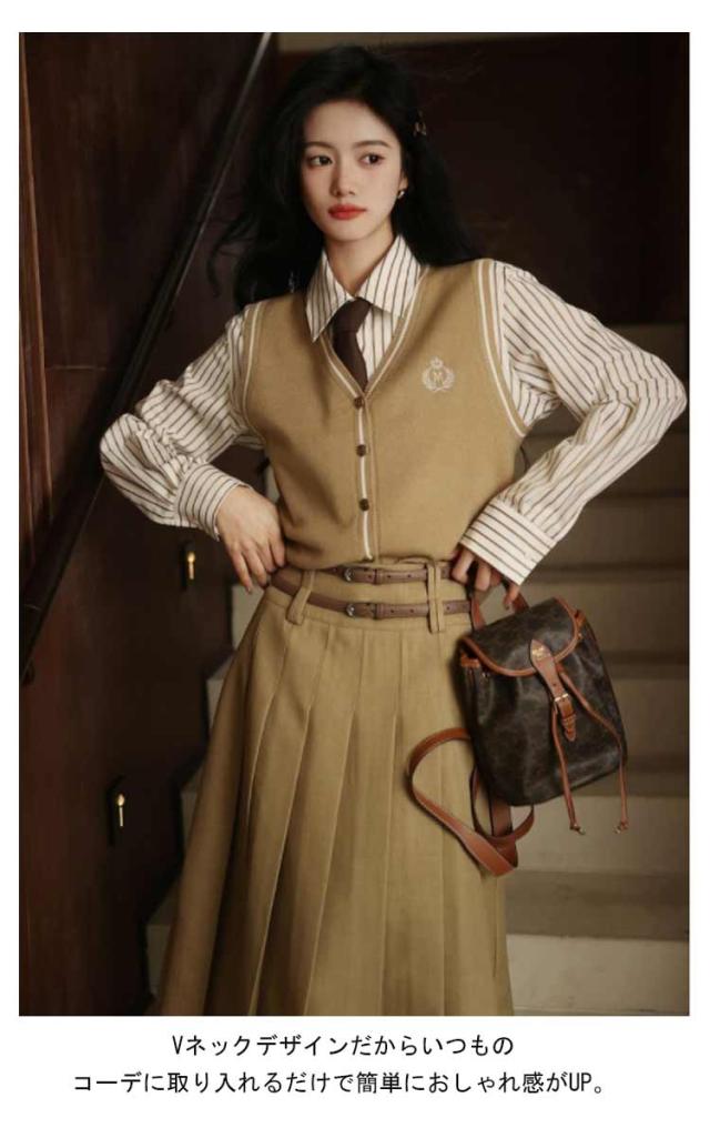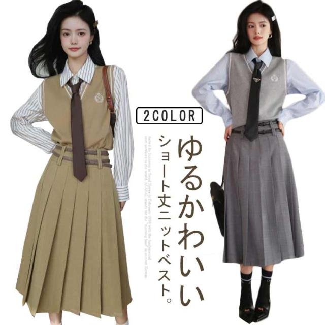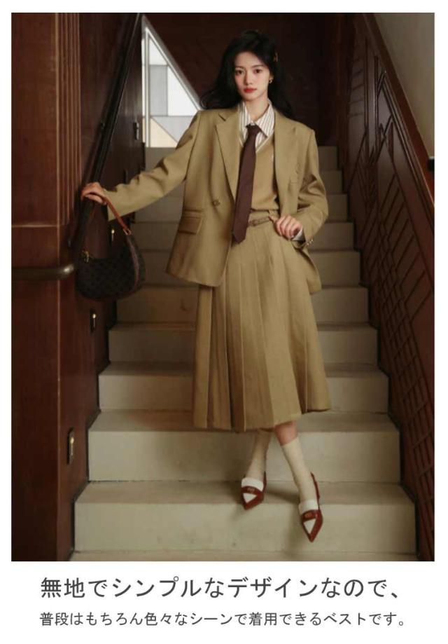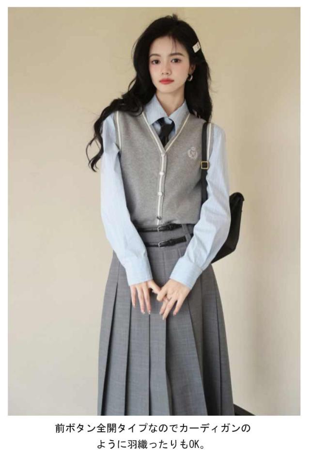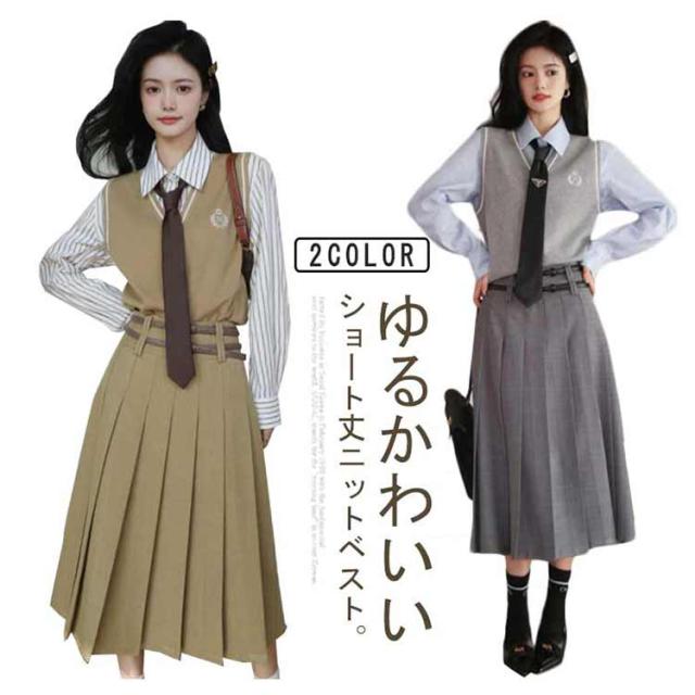ニットベスト 前開き 無地 女子高生 ベスト 制服 ノースリーブ ニットベスト vネック ニットベスト チョッキ スクールセーター コスプレ 制服 イベント ベスト 通学 通勤 中学生