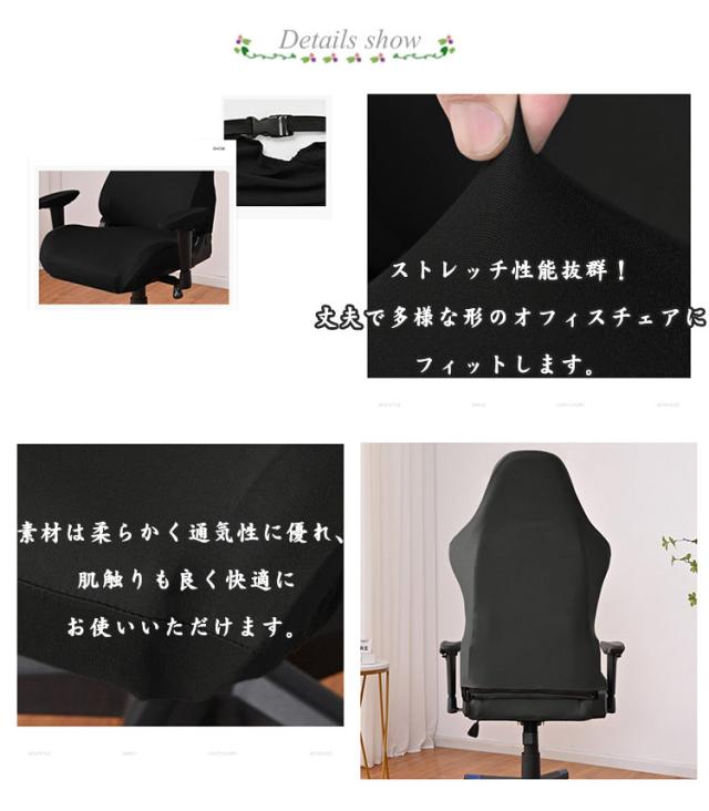 | ゲーミングチェアカバー アームレスト付き ストレッチ性能抜群!丈夫で多様な形のオフィスチェアにフィットします。 素材は柔らかく通気性に優れ、肌触りも良く快適にお使いいただけます。 | |